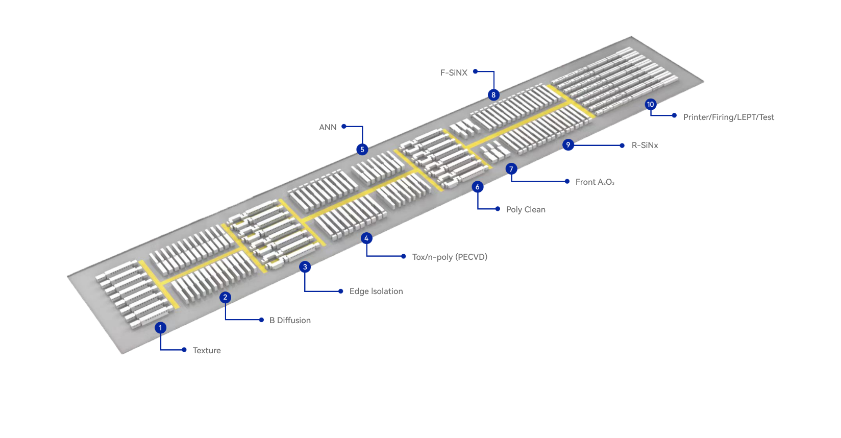 LEAD delivers complete turnkey production lines for high-efficiency Topcon solar cells and modules, featuring: